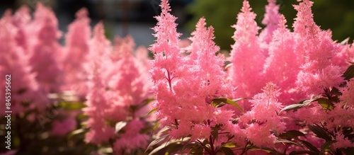 Beautiful astilbe flower in the garden. Creative banner. Copyspace image