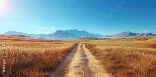 beautiful background with dirty road leading to mountains