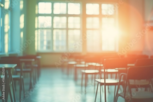 Beautiful blurred background of bright classroom