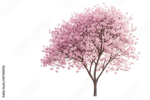 Beautiful cherry blossom tree with pink flowers isolated on transparent background