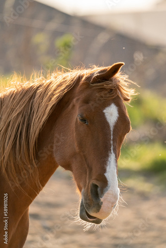 Beautiful chestnut horse with beautiful soft light
