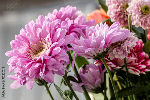 Beautiful chrysanthemum flowers close up. Floral background of autumn pink chrysanthemum. Pink chrysanthemum flowers in the garden.