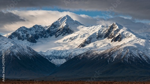Beautiful Clouds Over Snowy Mountains in Alaska Landscape