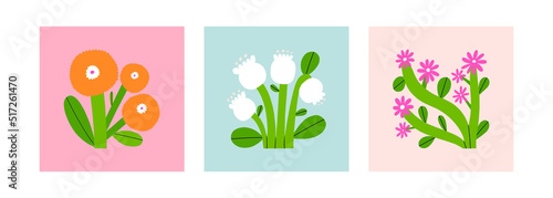Beautiful collection of three different Vector Flower illustrations. Hand drawn floral set. Perfect for wall art, packaging, stationery design