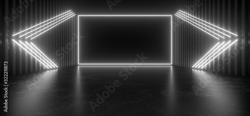 Beautiful composition of white neon lights on a black background. 3d rendering image.