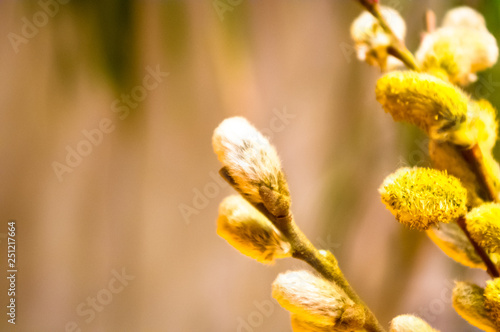 Beautiful early spring willow twigs with catkins
