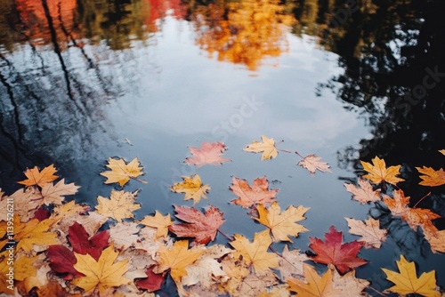 Beautiful Fall Foliage Reflected in a Calm Lake