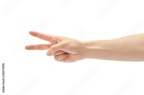 Beautiful female hand count two gesture. Isolated on white background