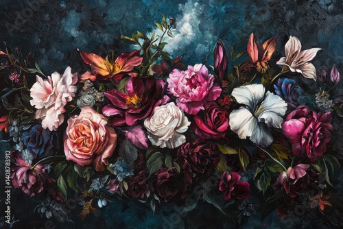 Beautiful Floral Arrangement with Dark Background and Colorful Blooms