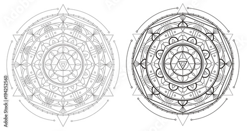 Beautiful geometry mandala with repeated elements for coloring book and your design.
