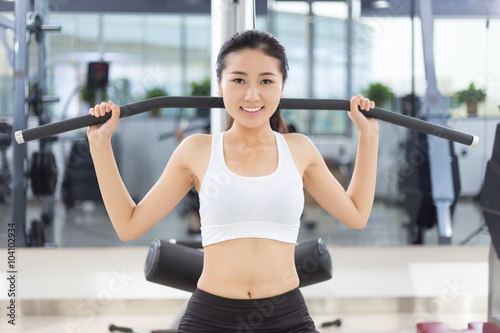 beautiful girl working out in modern gym