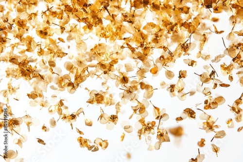 beautiful golden flower petals falling on a white background
