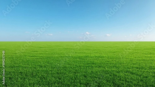 Beautiful Green Grass Field Under Clear Blue Sky Perfect for Nature and Landscape Photography