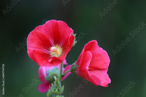 Beautiful hollyhock flowers in the garden
