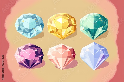 Beautiful jewels (crystals, diamonds) flat illustration created with Generative AI