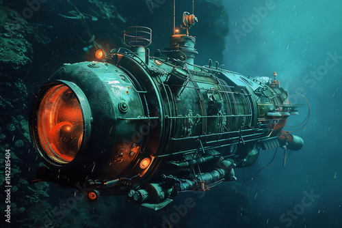 Beautiful large bathyscaphe floating in middle of ocean during exploration