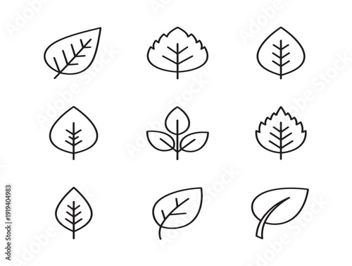 Beautiful Leaf Outline Icon Pack with Elegant Natural Design