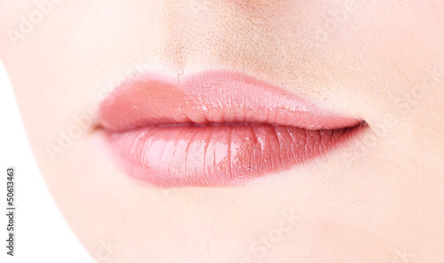 Beautiful make up of gloss lips, close up