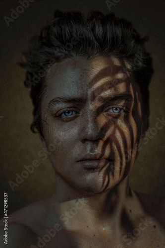 Beautiful male portrait with a shadow