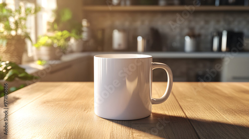 Beautiful morning light on white coffee mug