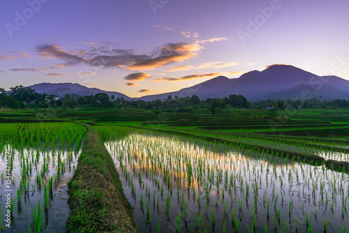 Beautiful morning view indonesia panorama landscape paddy fields with beauty color and sky natural light