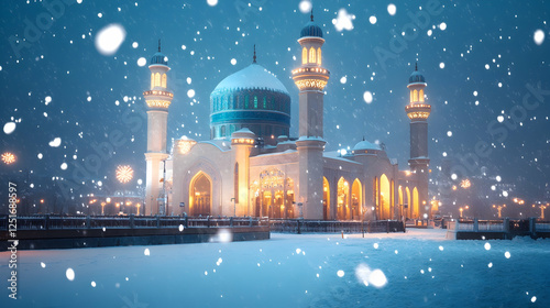 Beautiful Mosque Surrounded by Snow with Calm Atmosphere During Ramadan