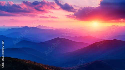 Beautiful mountain landscape at sunset with pink and purple sky scenic view for travel and tourism