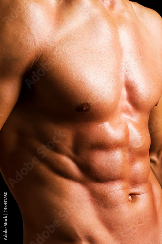Beautiful naked muscled torso against black background