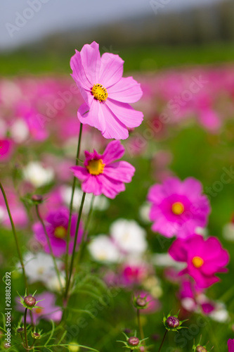 Beautiful pink flowers with blurred background in Thailand. Horizontal shot.