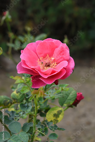 Beautiful pink rose flower closeup in garden, A very beautiful pink yellow rose flower bloomed on the rose tree, Rose flower closeup, bloom flowers, Natural spring flower floral background