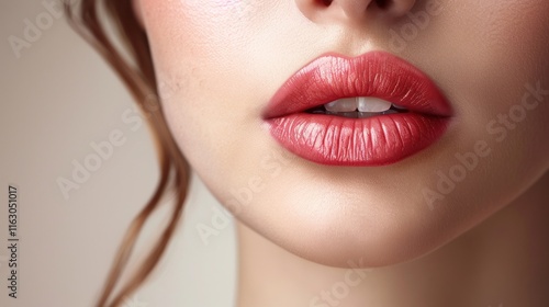 Beautiful red lips close-up. Make-up concept.
