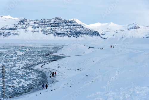 Beautiful scenery at Jokulsarlon glacier lagoon in the winter time in Iceland.