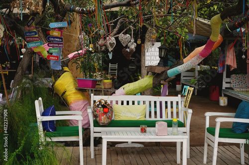 beautiful shabby garden under trees