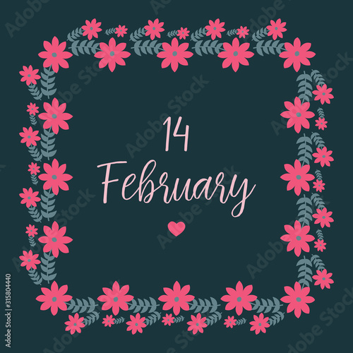 Beautiful Shape frame, with cute leaf and flower design, for 14 February invitation card template decoration. Vector