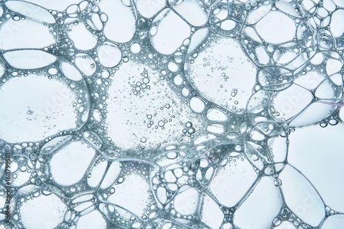 Beautiful soap bubbles of detergent or shower gel.