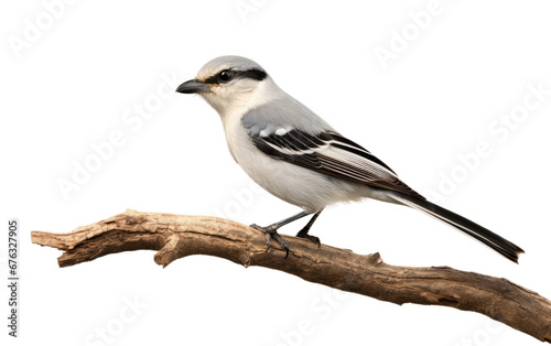Beautiful Southern Grey Shrike Bird on White or PNG Transparent Background.