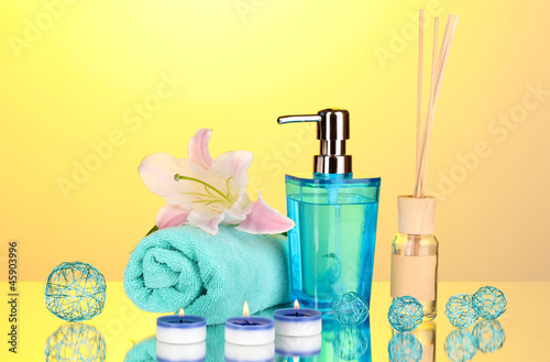 Beautiful spa setting on yellow background with reflection