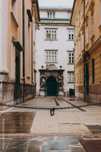 Beautiful streets after the rain of a European city with old architecture