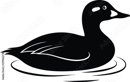 Beautiful Velvet Scoter swimming on water silhouette black color vector