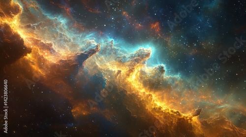 Beautiful vibrant nebula with stars and glowing celestial formations
