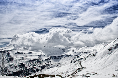 Beautiful view of Alps mountains. Snowy peaks in clouds. National Park Hohe Tauern, Austria.