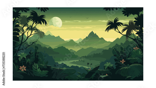 Beautiful view of the jungle. Vector illustration in cartoon style