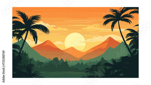 Beautiful view of the jungle. Vector illustration in cartoon style
