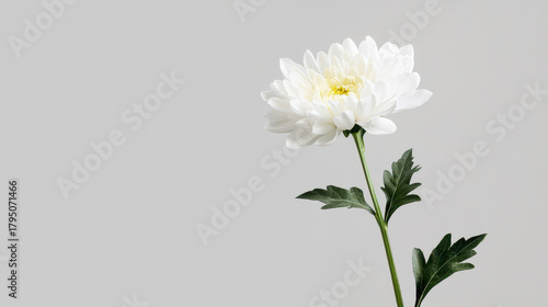 Beautiful white flower with delicate petals stands gracefully against soft gray background, showcasing its elegance and simplicity