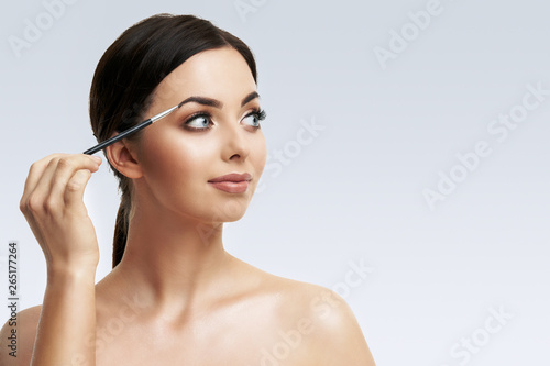 Beautiful woman face close up studio on white