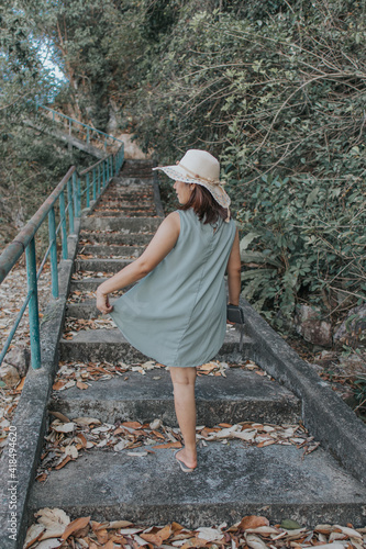 Beautiful woman walking on the staircase