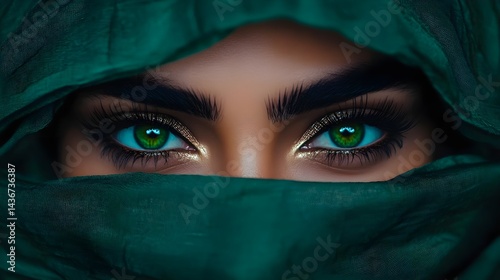 Beautiful Woman with Green Eyes and Elegant Green Veil