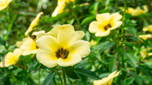 Beautiful yellow wild flower in the meadow under the sun. Natural background