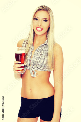 Beautiful young woman drinking beer.
