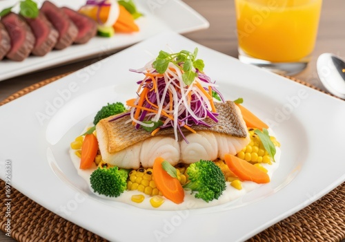 Beautifully Plated Pan-Seared Fish with Vibrant Vegetable Medley
